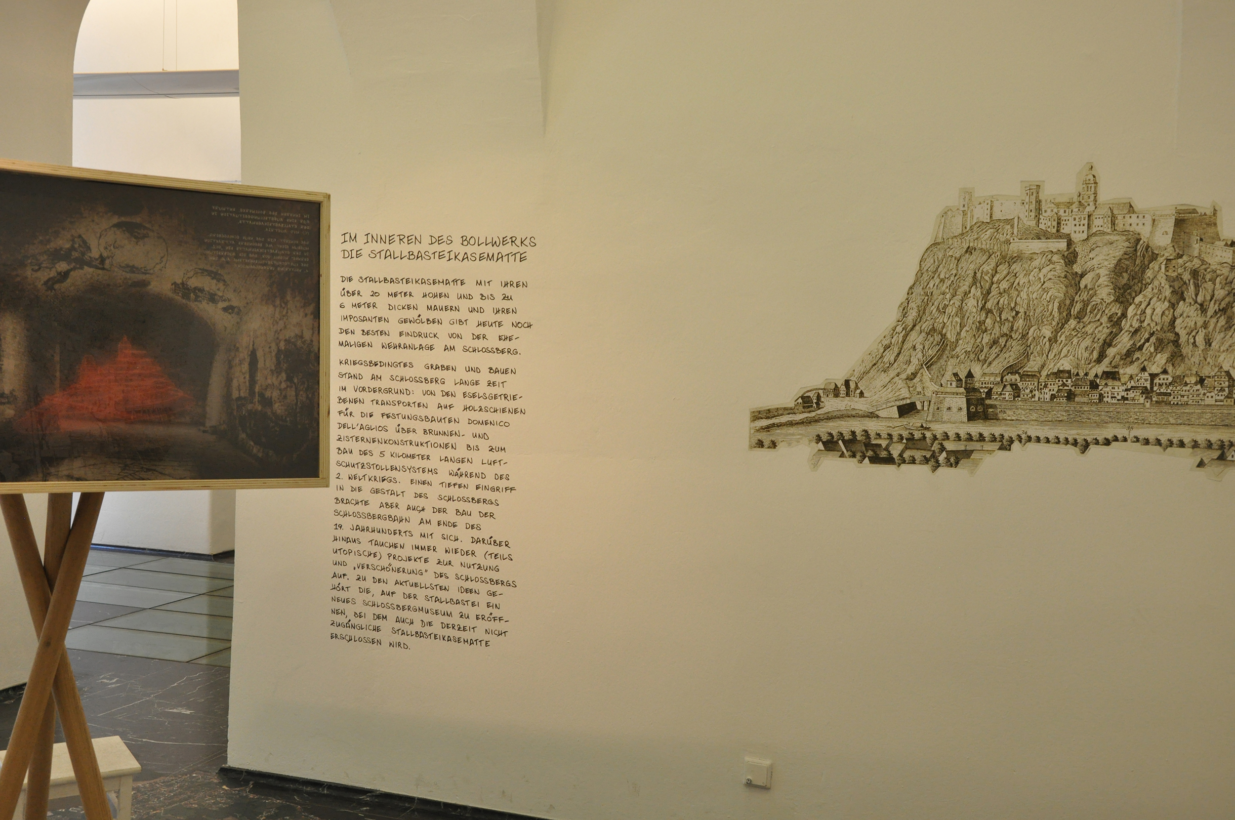 Der Grazer Schloßberg ist nicht nur die bekannteste touristische Attraktion der Stadt, sondern auch beliebtes Naherholungsziel für die Grazerinnen und Grazer selbst. Er ist Naturschauspiel und Aussichtspunkt, aber auch ein zentraler Schauplatz der Grazer Stadtgeschichte. Auf der ehemaligen Stallbastei könnte ein neues SchloßbergMuseum entstehen, das ganzjährig ein gesteigertes, verdichtetes Flanieren allein, zu zweit, in Familien und in kleineren Gruppen ermöglicht. Das Areal könnte zu einem familienfreundlichen Erlebnisbereich umgestaltet werden, der in einem vierteiligen Rundgang die Vielseitigkeit des Schloßbergs erfahrbar macht: Vom Gartenstudium über den Fernblick und den Geschichtsmuseumsbesuch bis zum Eintauchen in das Innere des Bergs.